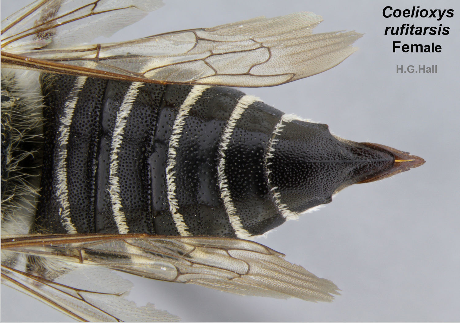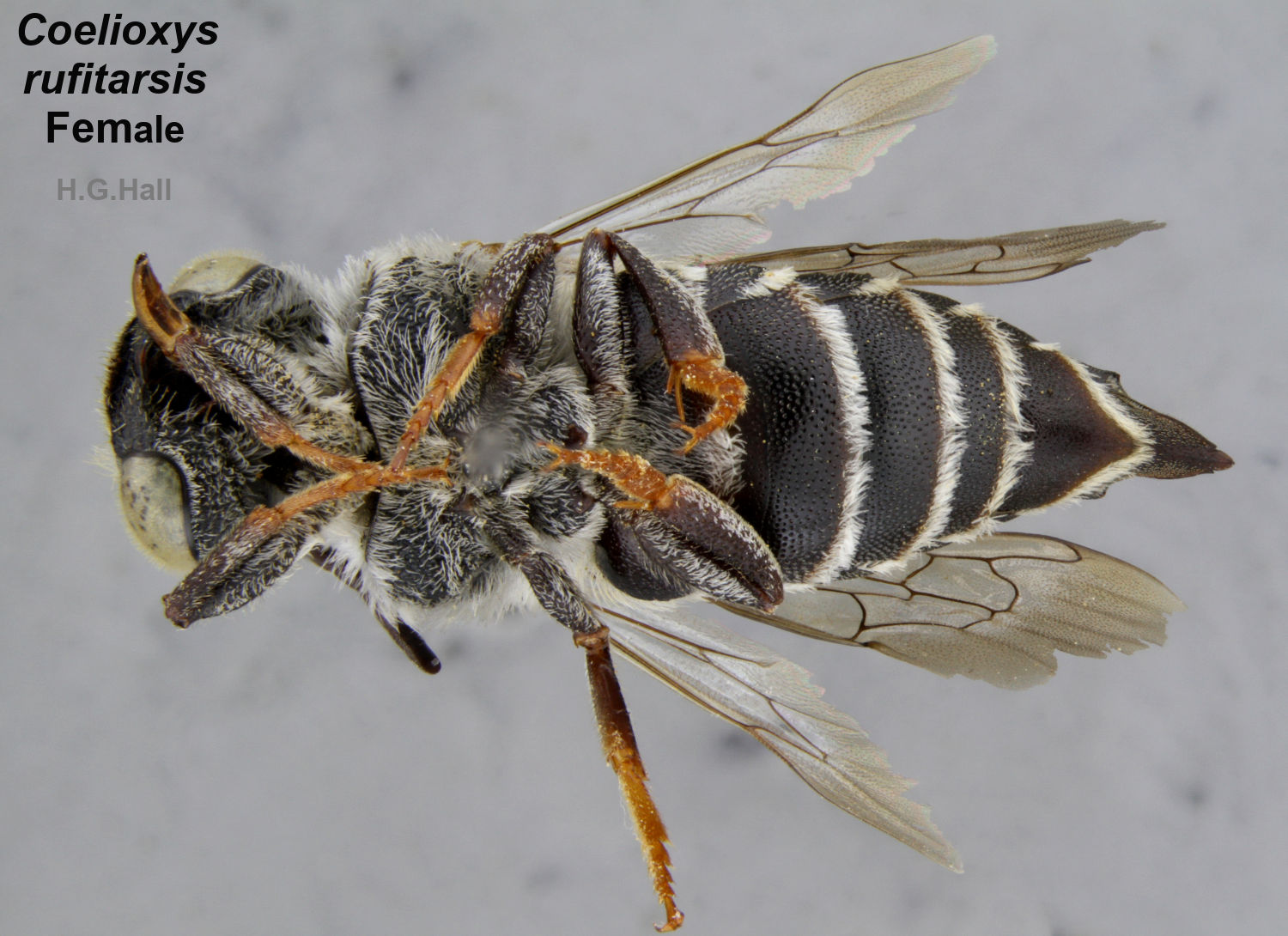 Fovea on metasomal tergum 2 wide, deep, short, conspicuous; margins of fovea impunctate; bee robust. .C. rufitarsis